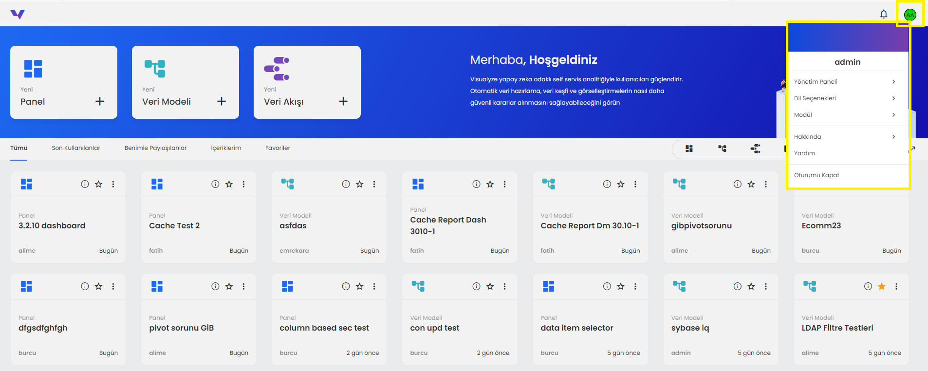 - Kilitli Objeler: Kilitlenen panel ve veri modellerinin listesi bu ekranda yer almaktadır.