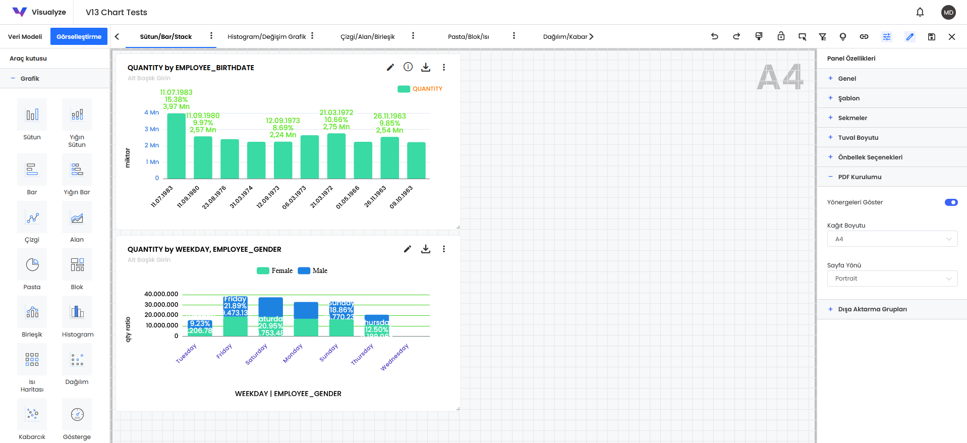 - Bu ayarlamalar yapılarak oluşturulan grafikler son kullanıcı tarafından indirildiğinde otomatik olarak tek sayfaya sığan bir pdf indirilecektir.