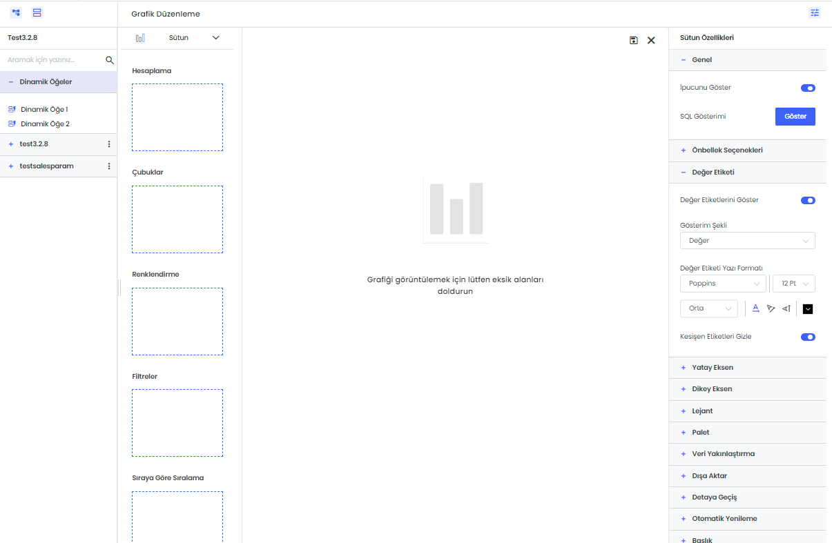 - Grafiklere eklenen Dinamik Öğeler panel içerisinden seçildiğinde grafik görüntüsü yukarıdaki gibi oluşmaktadır.